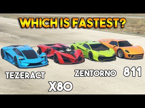 GTA 5 ONLINE : X80 VS 811 VS TEZERACT VS ZENTORNO (WHICH IS FASTEST?) - 811 Car - Here we compared four super cars from GTA Online. They are Tezeract, 811, Zentorno and X80 Proto. Tezeract is an electric super car among these. Drag tests ...